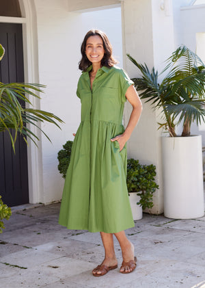 The Harper Shirtdress features a cap sleeve with turn up cuff for an effortless and smart modern look. Its midi length is designed to be suited for women of all heights.