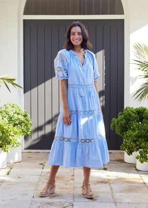 FINAL SALE - Designed with a relaxed fit, this dress provides both style and comfort. The fully lined Lotus Midi Dress ensures a smooth and comfortable wearing experience, while the lightweight 100% cotton fabric allows for easy movement and breathability, even on the warmest days.