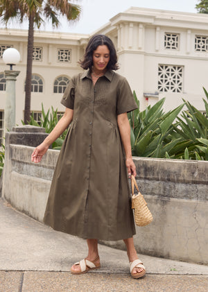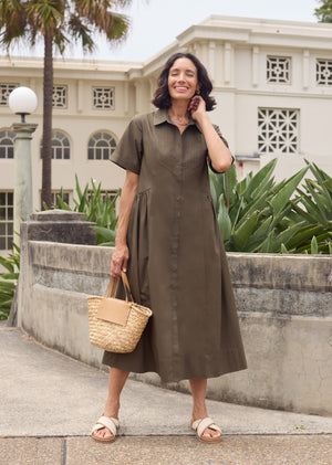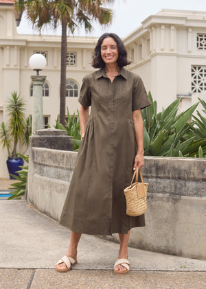 SALE - Meet the Juliette Shirtdress, a fresh take on our best seller Corinne Shirtdress — now with elegant sleeves for added sophistication. Designed for effortless style, this timeless piece features a tailored silhouette, crisp collar, and versatile button-down front. Perfect for any occasion, the Juliette Dress seamlessly transitions from day to night.