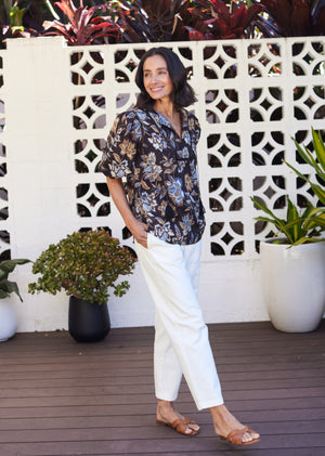 The Saskia Top has got you covered. Its timeless design allows you to dress it up or down effortlessly. Pair it with the Estella Pant in Ivory for an elegant resort look, or go casual with the Brooklyn Pant (coming in Sept) for a day out exploring. Lightweight and stylish, it's the ultimate holiday top.
