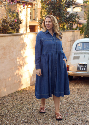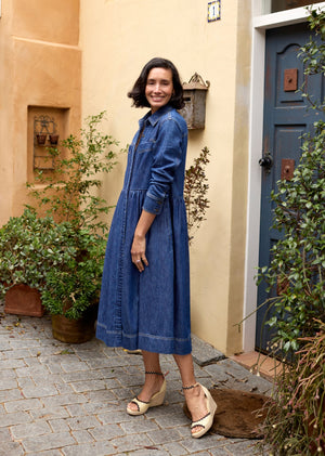 The Harper Long Sleeve Denim Shirtdress is the long-sleeve take on our best-selling Harper, crafted in a versatile Mid Blue wash from soft, mid-weight denim for a premium hand feel and effortless, smart-casual style.