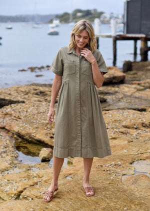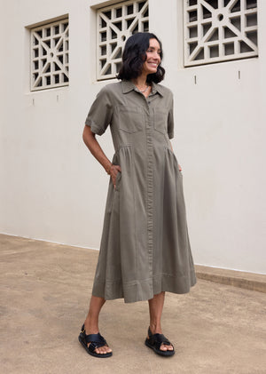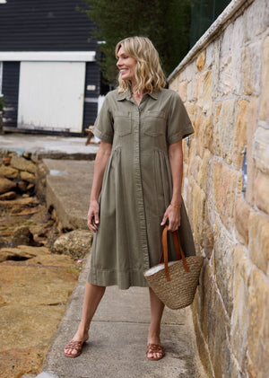 The Montana Denim Shirtdress is the effortless staple your wardrobe has been waiting for. Designed in a soft-washed denim, this midi-length shirtdress drapes beautifully for a relaxed yet elevated feel.
