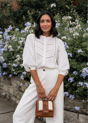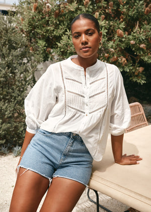 The Paloma Shirt is a wardrobe staple that transcends trends. Its intricate lace and pintuck details add a touch of femininity and elegance to this classic shirt.