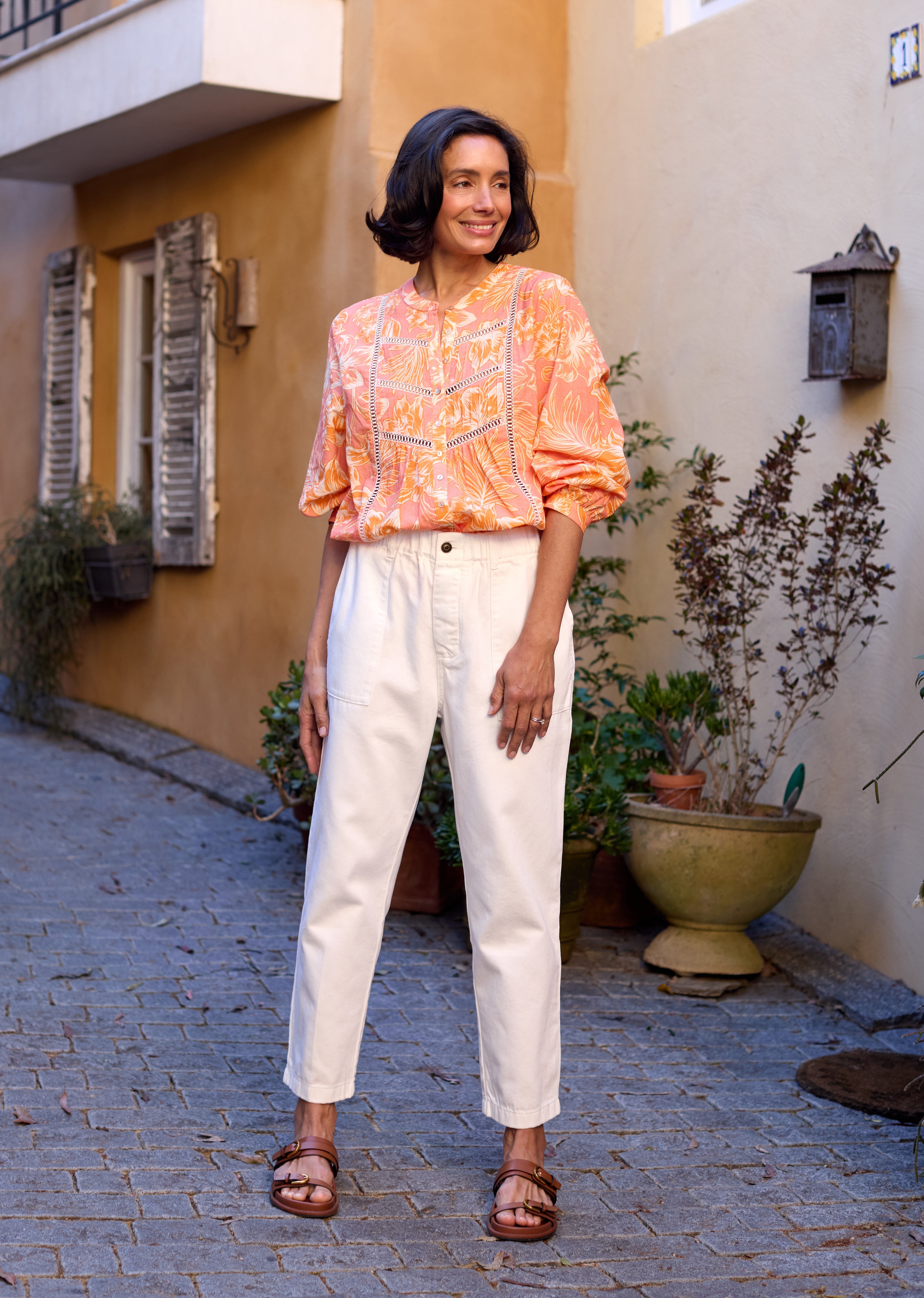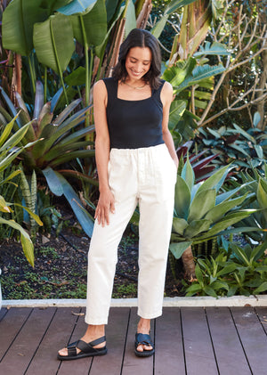 The Brooklyn Pant in White is the classic white pant that goes with absolutely everything and instantly pulls your look together. Crafted from 100% cotton soft-washed drill, they feel beautifully soft yet hold their shape, with an elasticated waist and fly front for all-day comfort. The cropped length gives a modern, flattering line, while the functional pockets keep things effortlessly practical. Dress them up with the Paloma blouse and sandals or down with your favourite tee or denim shirt and trainers – the Brooklyn Pant is the easy, everyday staple your wardrobe’s been missing.