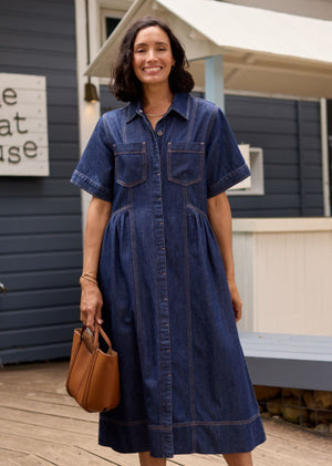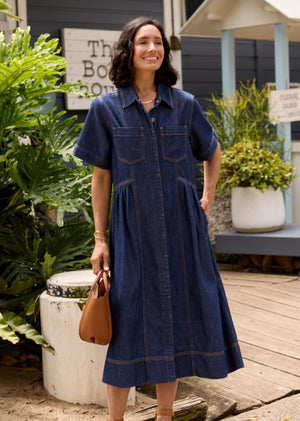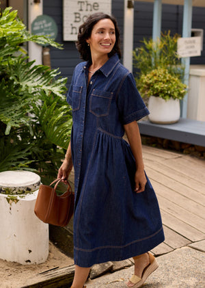 The Montana Petite Denim Shirtdress is the effortless staple your wardrobe has been waiting for—now perfectly proportioned for women 157cm / 5'2" and under. Designed in the same soft-washed denim, this midi-length is 11cm shorter than the standard Montana, and has been re-proportioned through the bodice length, skirt length, and skirt width for a petite frame.
