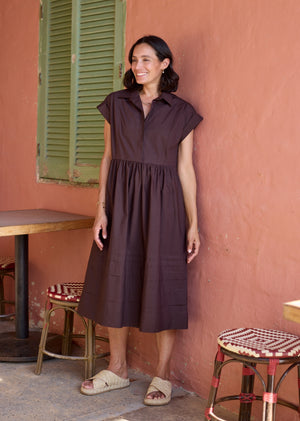The Gracie Shirtdress redefines everyday elegance with its crisp cotton poplin and softly pleated skirt. A modern twist on our classic Harper, it offers a relaxed yet refined silhouette that flatters every shape — perfect for effortlessly transitioning from work to vacation.