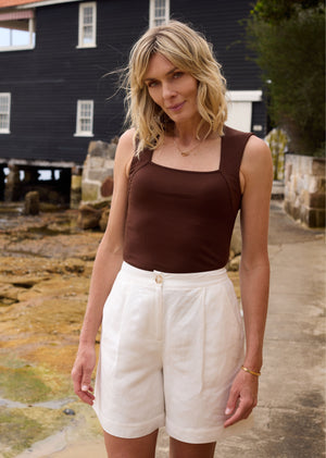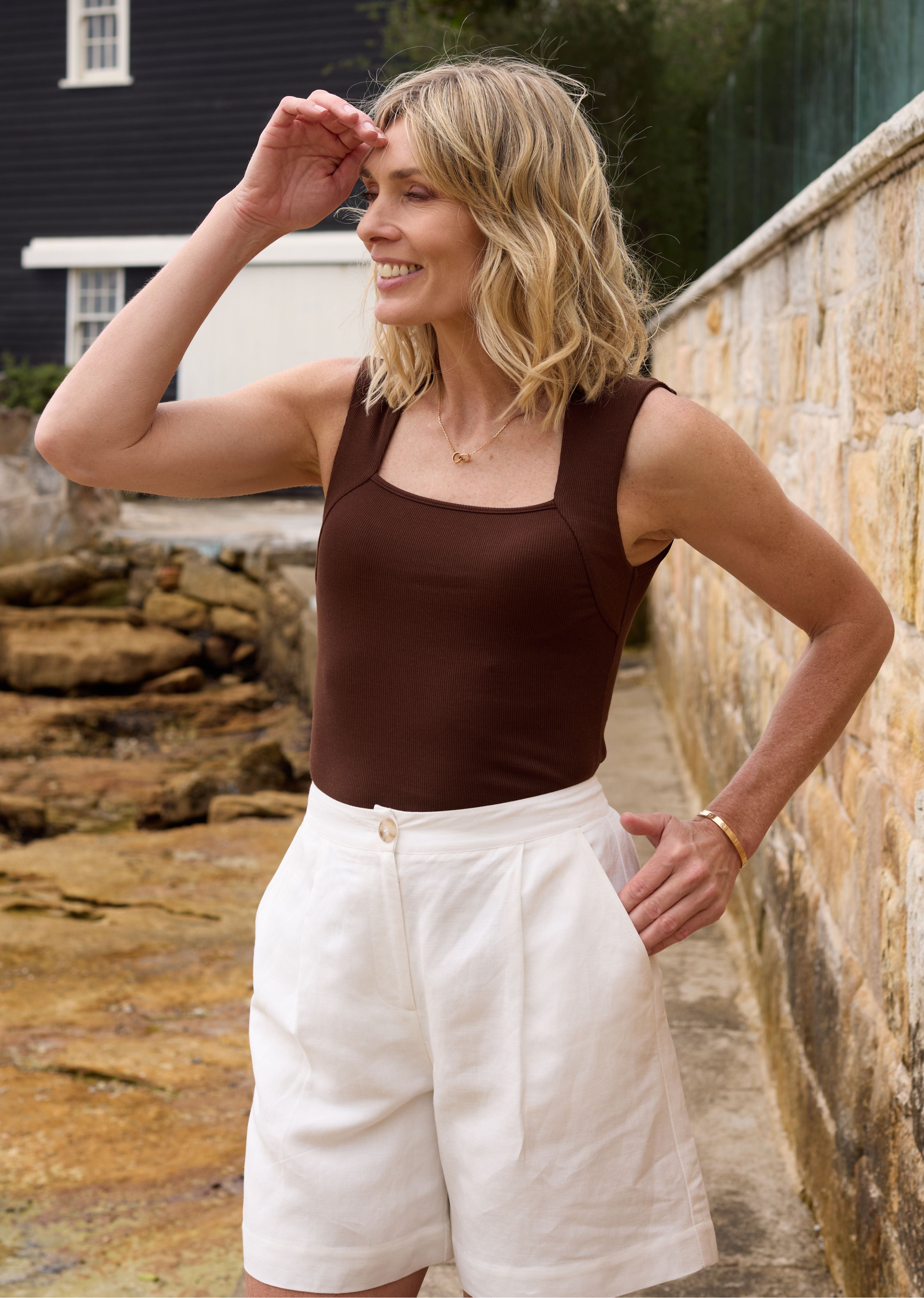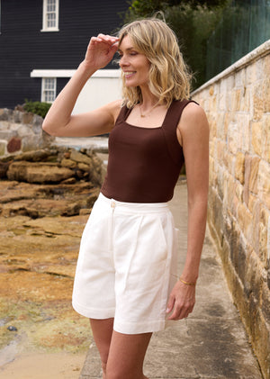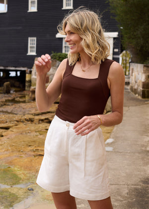 Meet the Jemima Rib Tank, a timeless staple that elevates your wardrobe with its simple yet elegant design.