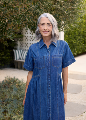 The Montana Denim Shirtdress is the effortless staple your wardrobe has been waiting for. Designed in a soft-washed denim, this midi-length shirtdress drapes beautifully for a relaxed yet elevated feel.