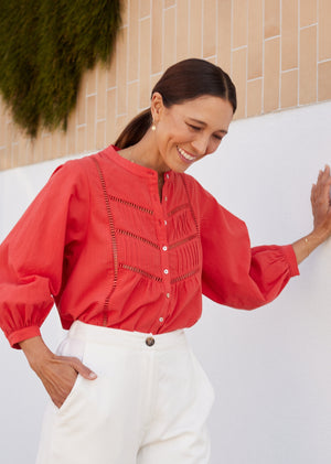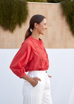 The Paloma Shirt is a wardrobe staple that transcends trends. Its intricate lace and pintuck details add a touch of femininity and elegance to this classic shirt.